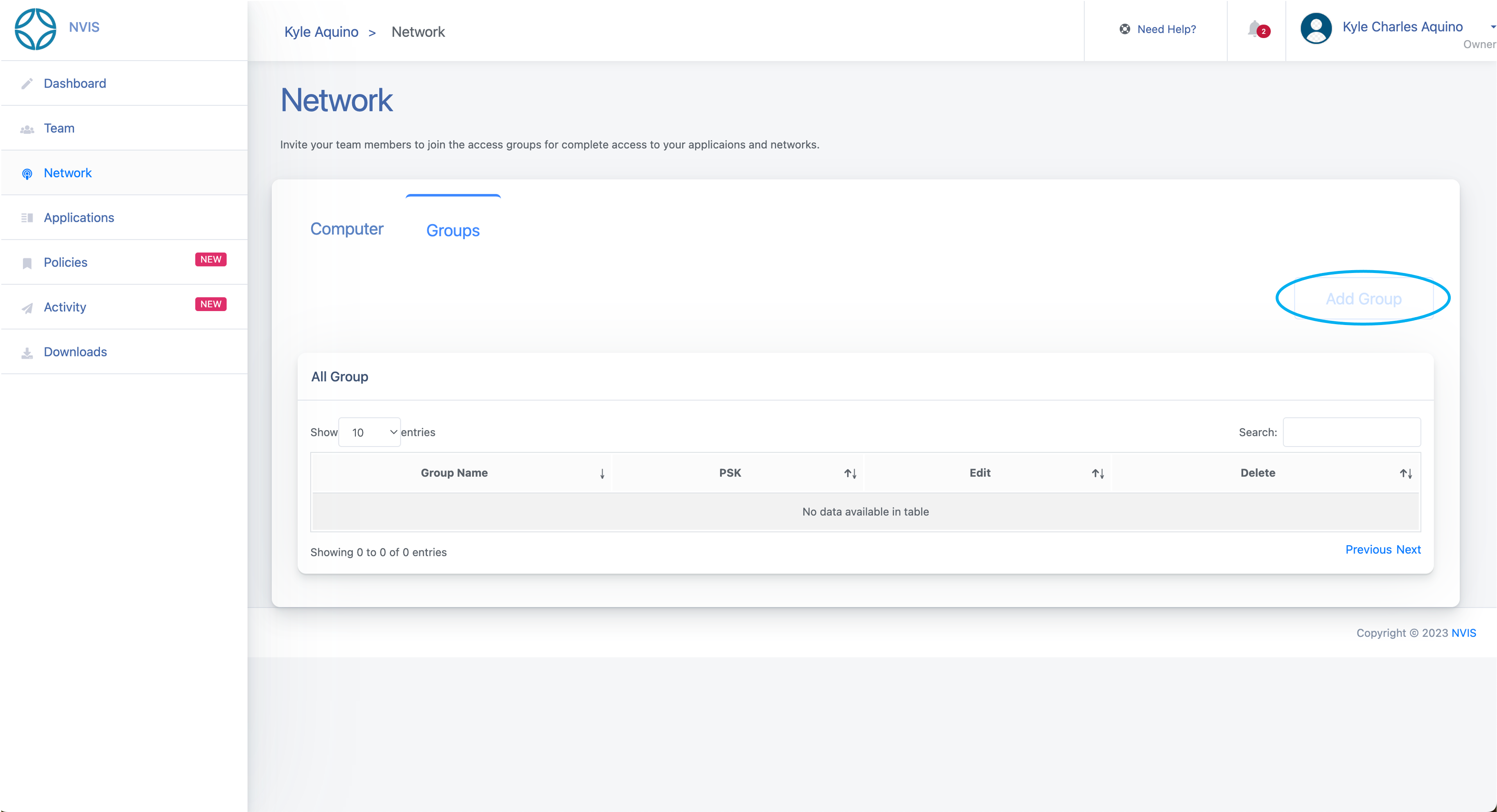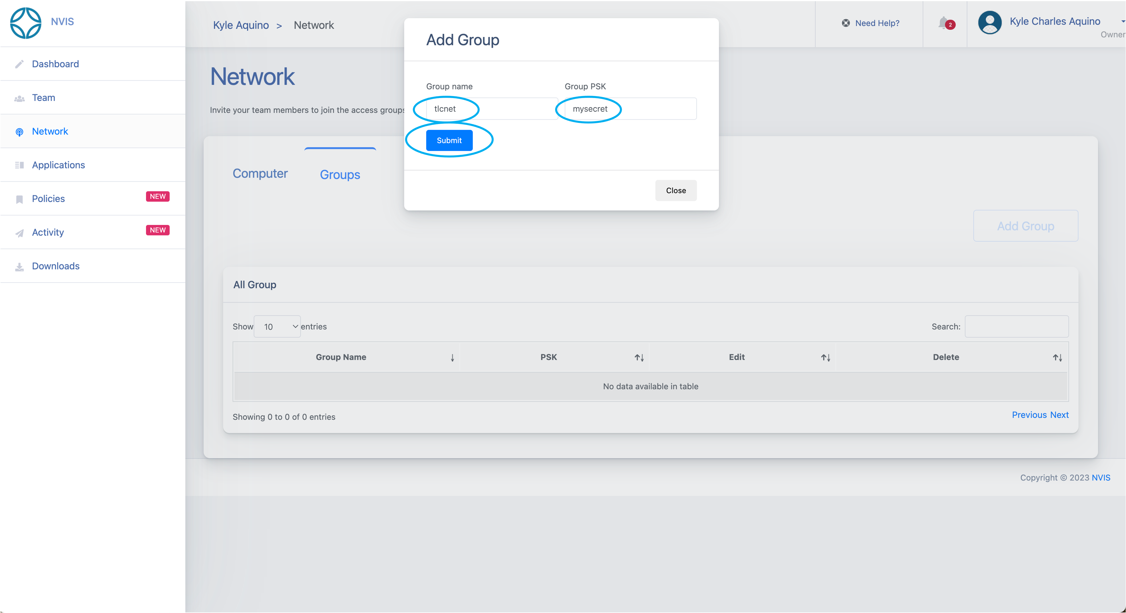 In the Add Group dialog box, input the Group Name and Group PSK you determined in the previous step in Plan Your Network.