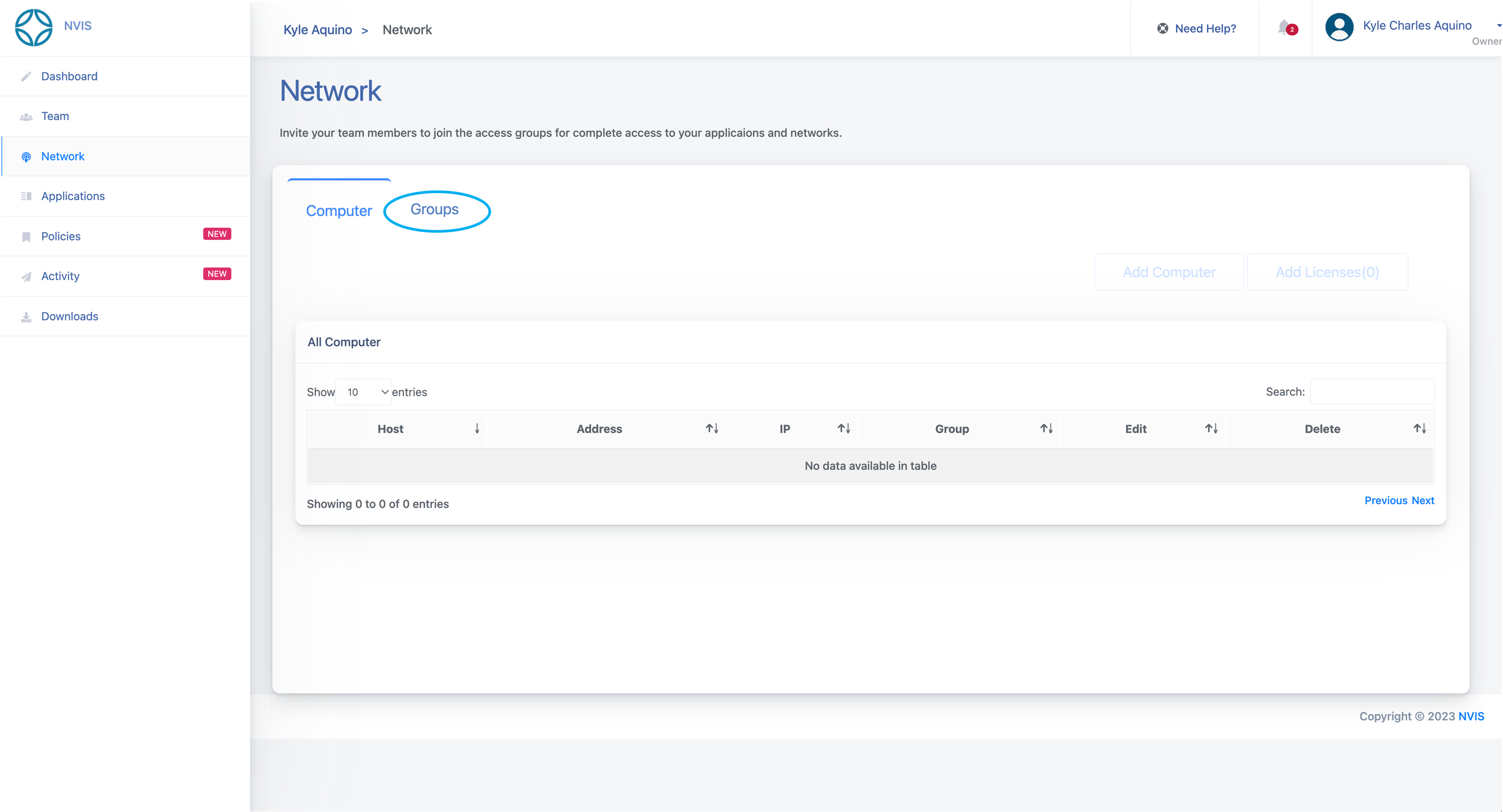 You will see that on the Add Licenses(#) button on the right, which is greyed out, there is a number in parentheses to indicate the number of licenses you purchased. Select the Groups tab.